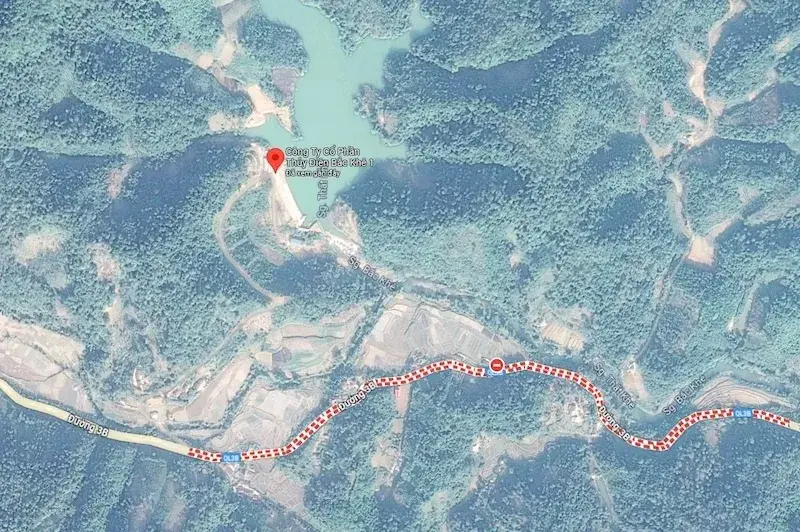 Hình ảnh vệ tinh, dấu chấm đỏ là vị trí đập thủy điện Bắc Khê 1, thuộc địa phận xã Tân Tiến, tỉnh Lạng Sơn.